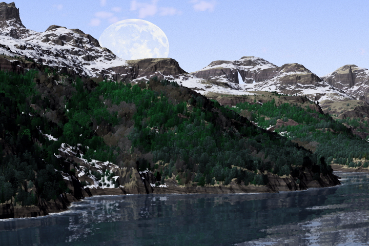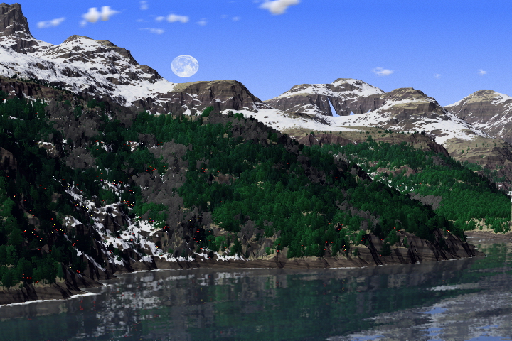comprendevano una Fractal Depth = 4, 3D Clouds, Waves, e Reflections.