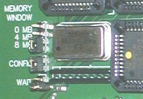 I jumper che si intravedono servono a selezionare l'apertura di memoria che la Mediator prende nello spazio Zorro II dell'A1200. E` possibile selezionare 0, 4 o 8 Megabytes. L'impostazione più usata sarà quella di un'apertura di 4 Mega.